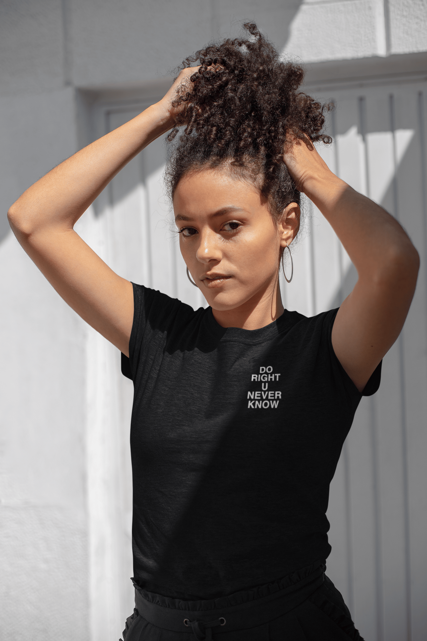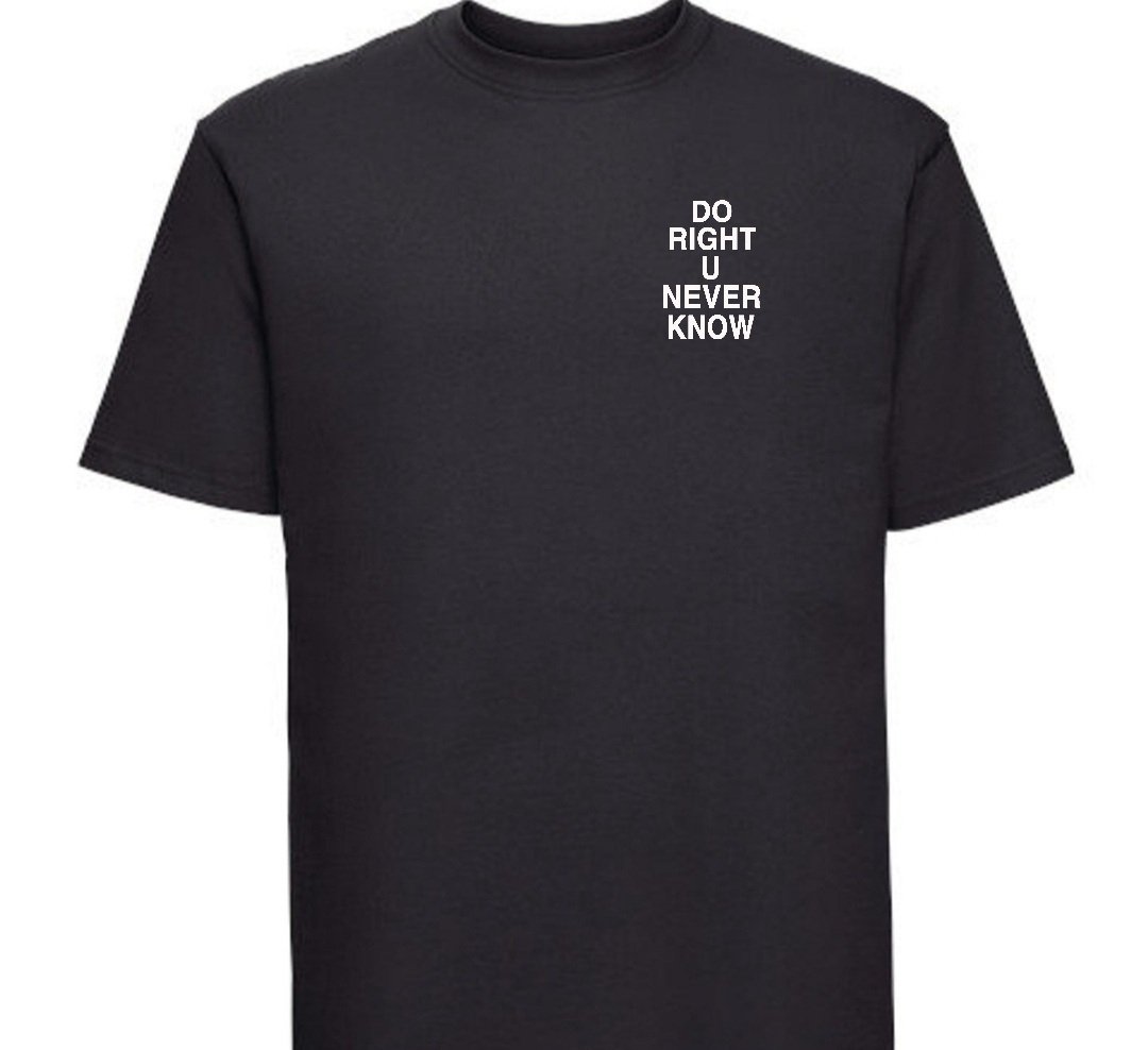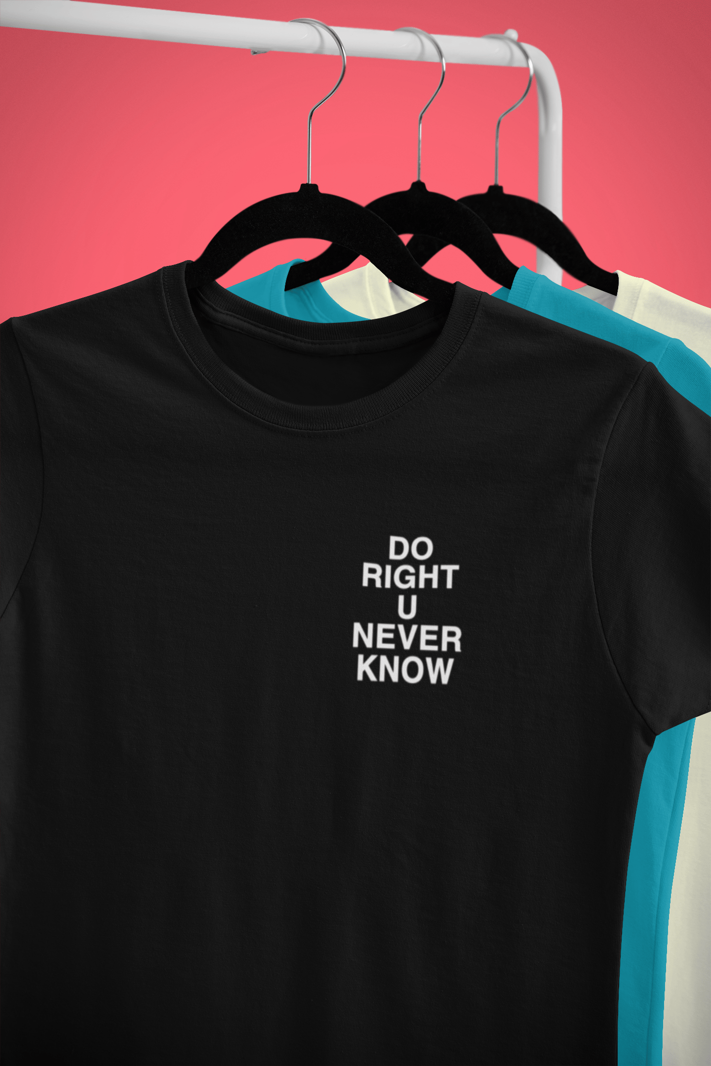 A staple in the DRUNK WEAR BY LD collection, this tee blends everyday comfort with purpose. Featuring the stacked Do Right U Never Know logo on the left chest, it’s a subtle but powerful reminder to carry the message wherever you go.